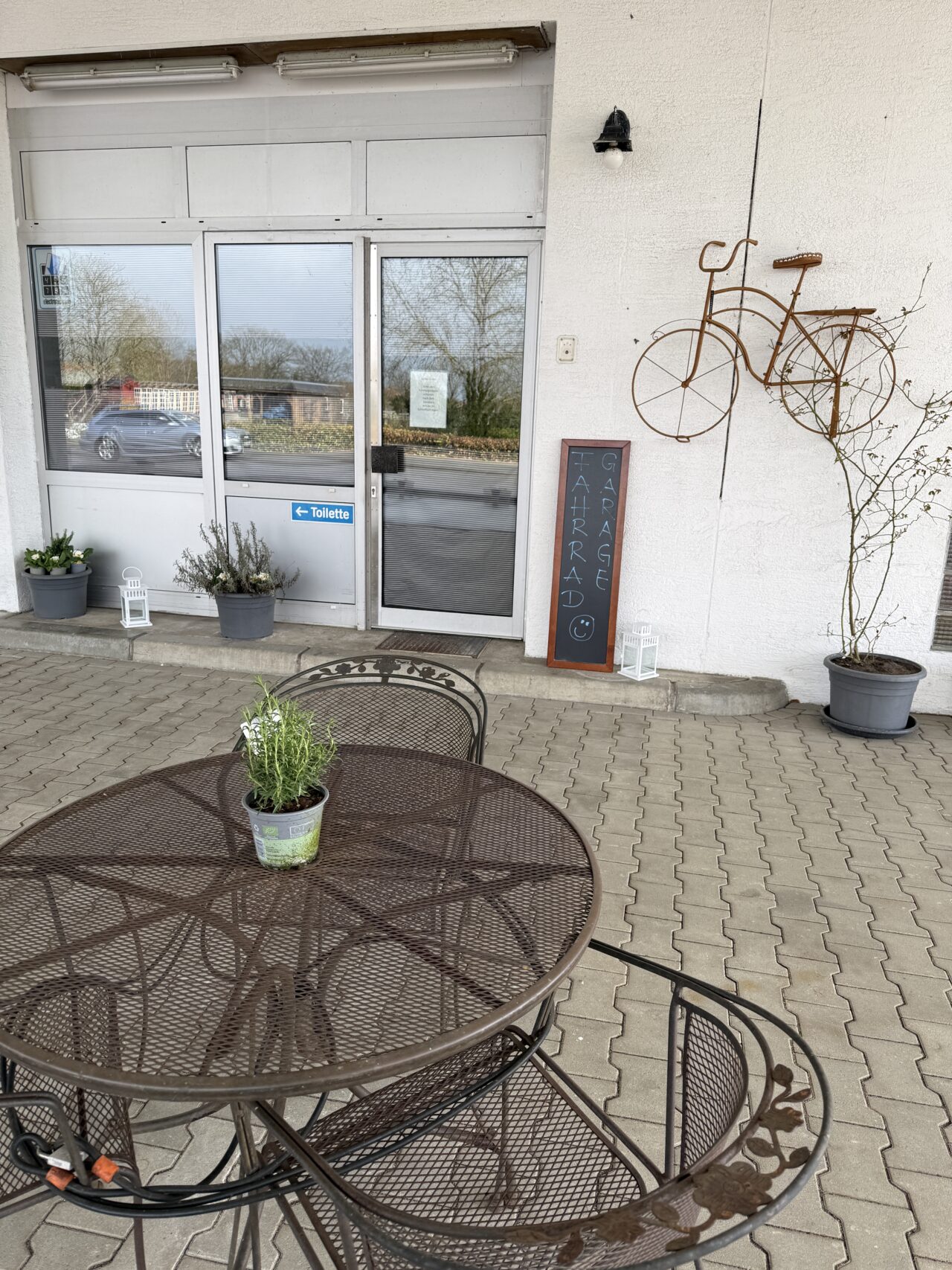 Wir haben einen E Auto Ladeplatz ( gegen Gebühr), eine grosse Fahrradparkgarage in der alten Tankstelle, Fahrradreparaturkits, Anreise Tag und Nacht auch über Schlüsselkasten mit Code.